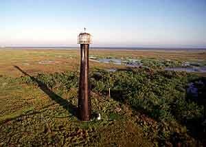 The Matagorda Island lighthouse is on a barrier island accessible only by a passenger ferry that departs from Port O'Connor or private boat. There is no causeway to the island that is a naturalist's paradise. History, birding, and wildflower tours are offered during the spring and summer months. Phone for details on the tours and the ferry schedule.