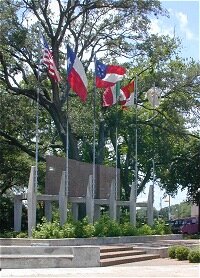 Victoria was founded in 1824 by empresario Don Martin de Leon who was granted permission by the Mexican government to establish himself and 41 families on the Guadalupe River. The town was laid out in the style of traditional Spanish municipalities and even today De Leon Plaza is a favorite place to gather. The plaza includes a monument displaying the six flags that have flown over Texas, a Victorian band stand, and the "Last Stand" statue of a Confederate soldier by noted sculptor Pompeo Coppini.