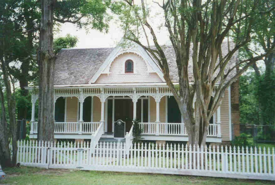 The Dilue Rose Harris House is constructed of "tabby," a mixture of gravel, sand, and lime mixed with water and poured into large block forms and fitted together to create 12-14 walls that were coated with plaster. The house retains its original pine woodwork, floors, ceilings and cedar thresholds. Door frames in the basement are also cedar to discourage termites. All of the four panel doors are original and have doorknobs of stoneware with a Rockingham (mottled brown) glaze. The museum is furnished with Early Victoria walnut and Texas pine pieces, some from families of the Columbus area including a walnut plantation-type desk made for Dr. Pleasant by slaves on his farm at Stafford's Point.
