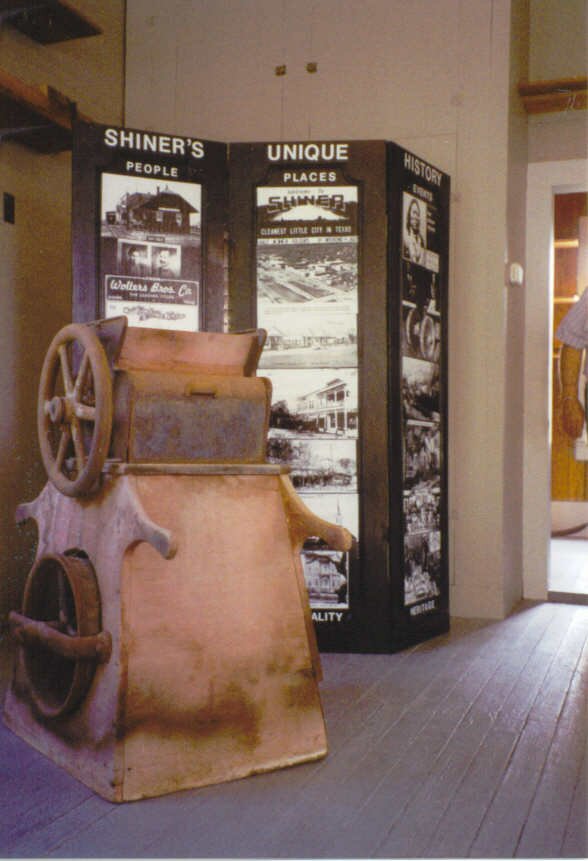The early history and lifestyle of Texas are displayed in exhibits featuring early household items, furnishings, sewing and washing machines, clothes, antique farm machinery, saddles, planters, and tools. A 100 year old baby grand piano and other musical instruments, a radio and toys are included in the exhibits. Indian artifacts, arrowheads, archeological specimens (local - including a mastodon tooth) give the visitor a view of life before early settlement of the region. A pictorial view of early settlers, parades, homes, schools, organizations, churches is also available. |